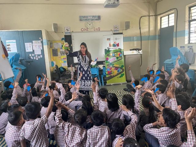 It was a delight to see how well the MCD School at Dayanand Colony had prepared for the storytelling session held on 4th October. The session took place with students from grade 3, amassing a total of around 65 students. The young audience were very responsive to the storyteller duo, Munazzah Bilal and Jyoti Kumar, who let the magic of their energy cast a spell on the children. Much to the amazement of not just students, but teachers too, the beautifully illustrated fables left little moral takeaways for the audience, articulated in comical voices and amusing actions.