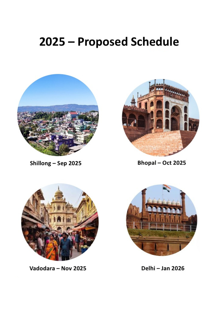 Shillong, Bhopal, Vadodara, Delhi